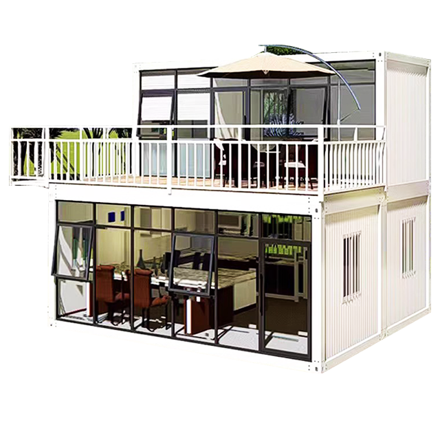 Easy-assembled Villa with Front Side Glass Wall and Terrace Low Cost Company Building Comfortable Prefab Modular House