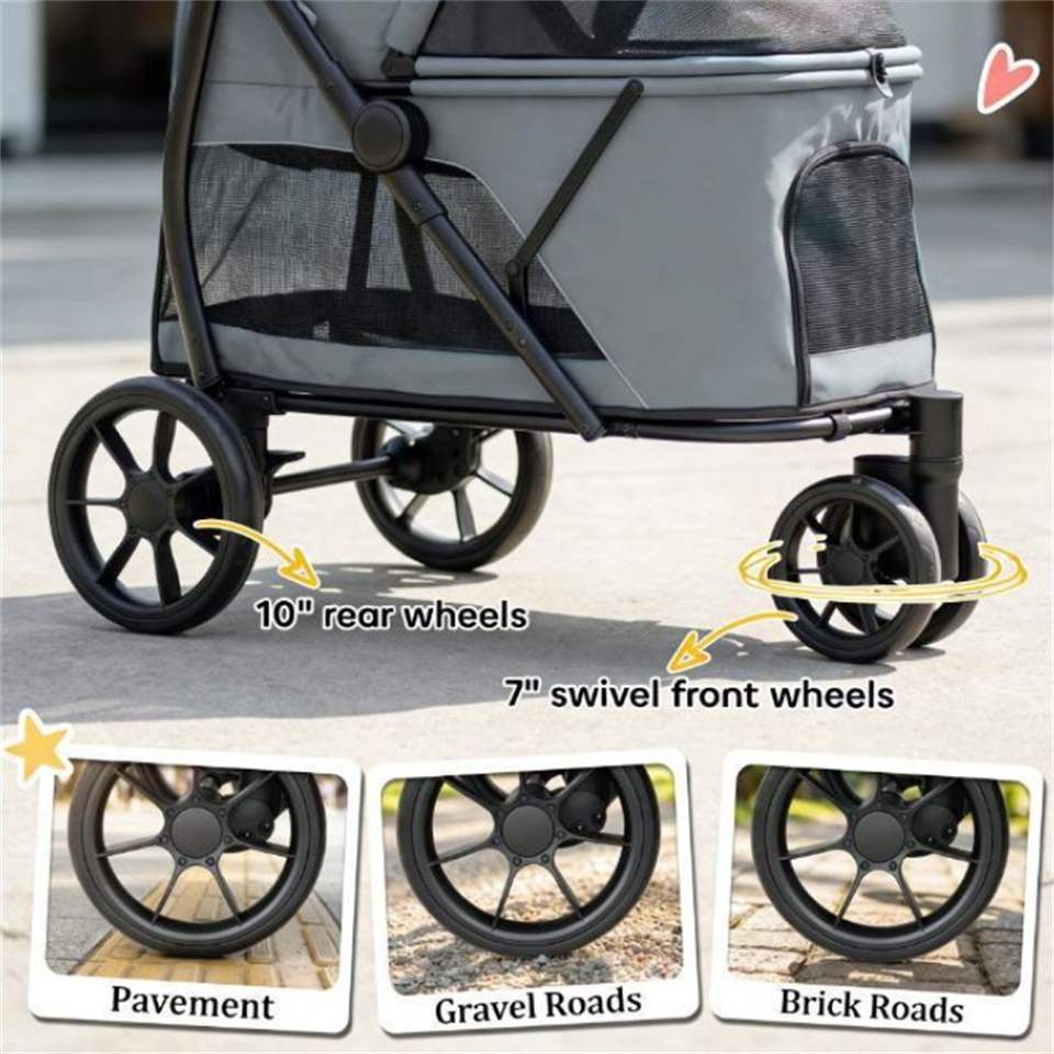 Passeggino per Animali Domestici Grigio Facile da Trasportare, Comodo Passeggino per Cani nella Categoria Trasportini per Animali