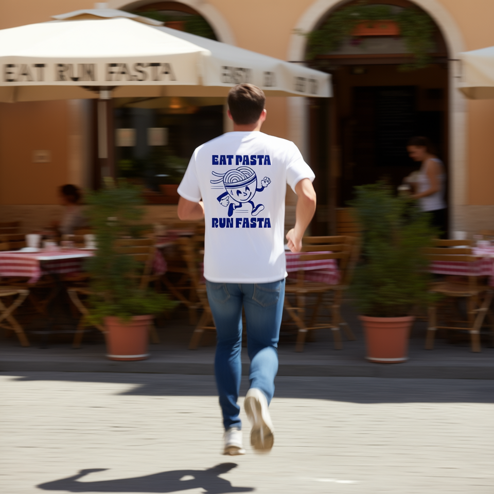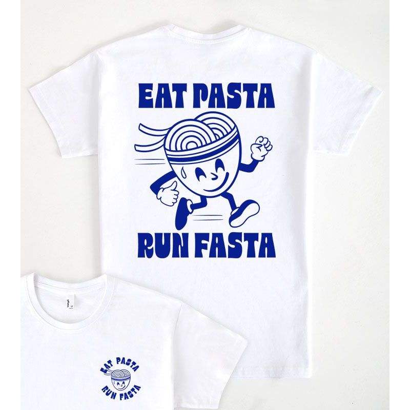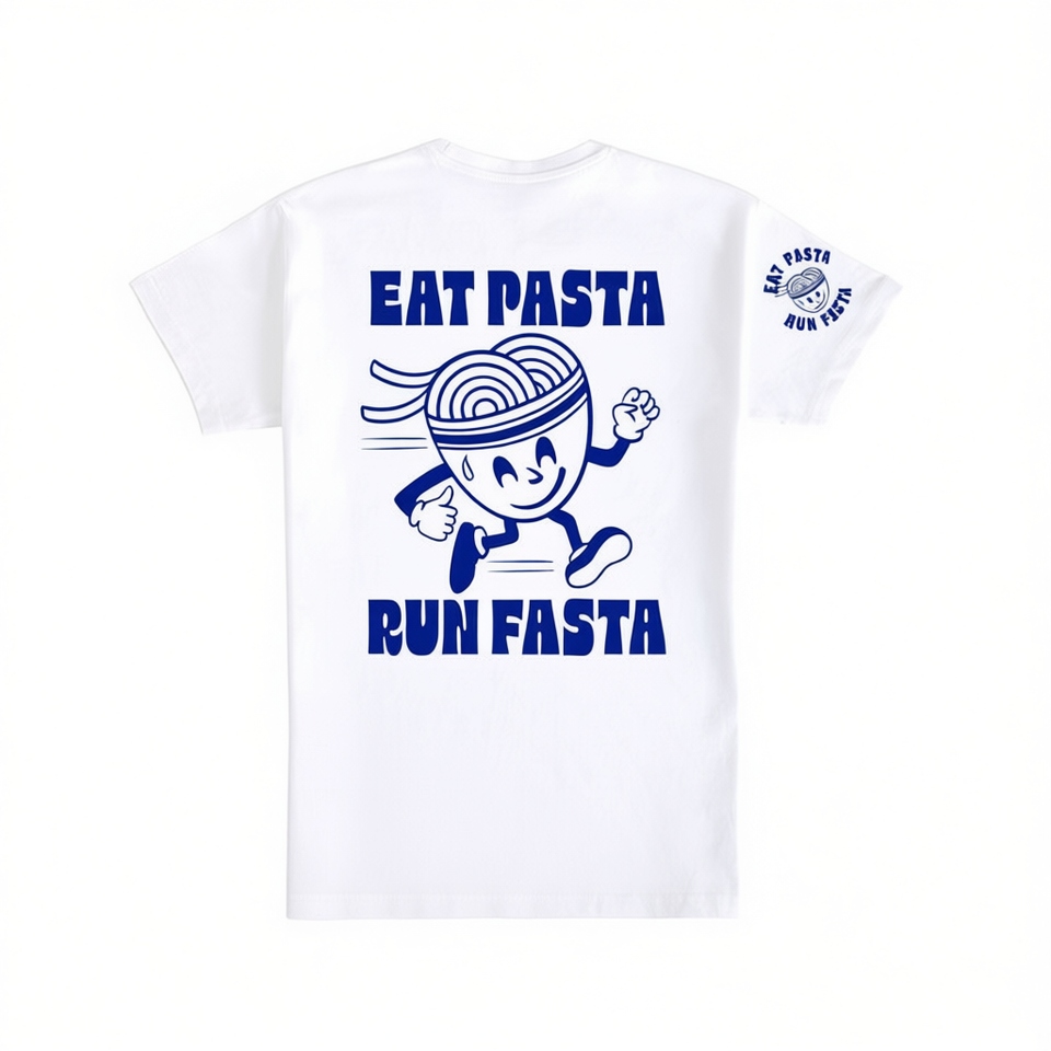 T-shirt promozionale bianca a maniche corte Eat Pasta Run Fasta
