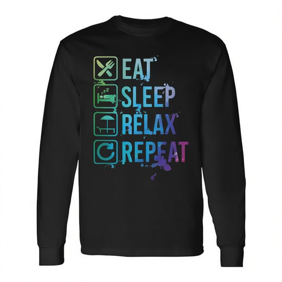 T-shirt a maniche lunghe Eat Sleep Relax Repeat, abbigliamento casual unisex