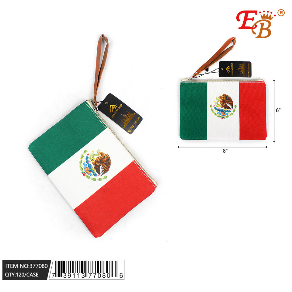 Eb Mexico Flag Clutch Bag 6X8 Genuine Leather RFID Women's Handmade Bohemian Style Zipper Closure