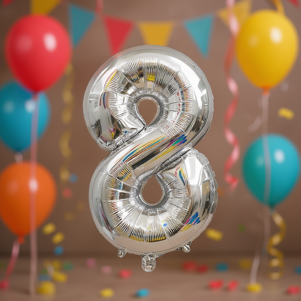 Eb Number 8 Silver Aluminum Film Balloon 40 Inches For Party Decorations Birthday Kids