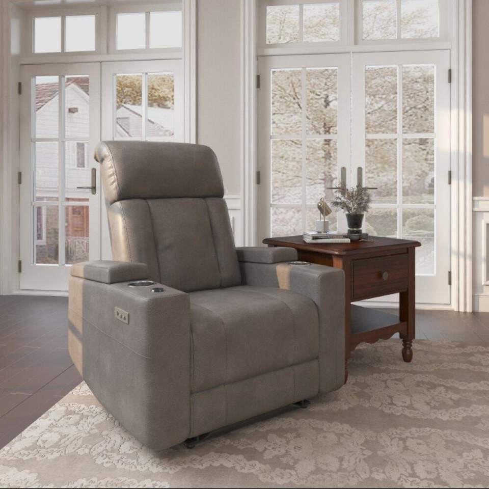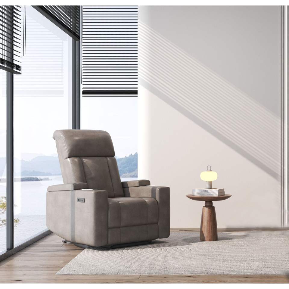 Poltrona Reclinabile Elettrica in Ebano con Doppio Vano Portaoggetti e Portabicchieri in Legno