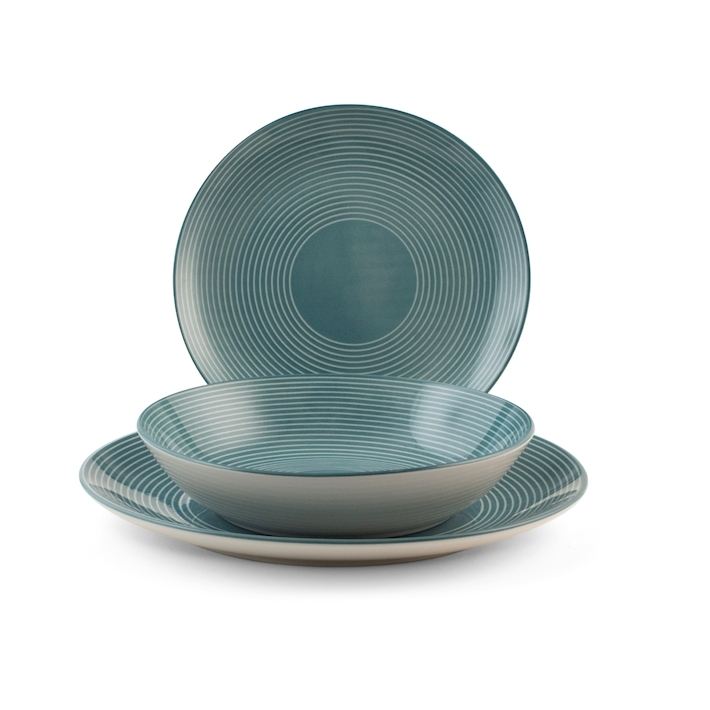 Set di Stoviglie Echo da 18 Pezzi in Teal, Piatti e Ciotole, Servizio Completo per la Tavola