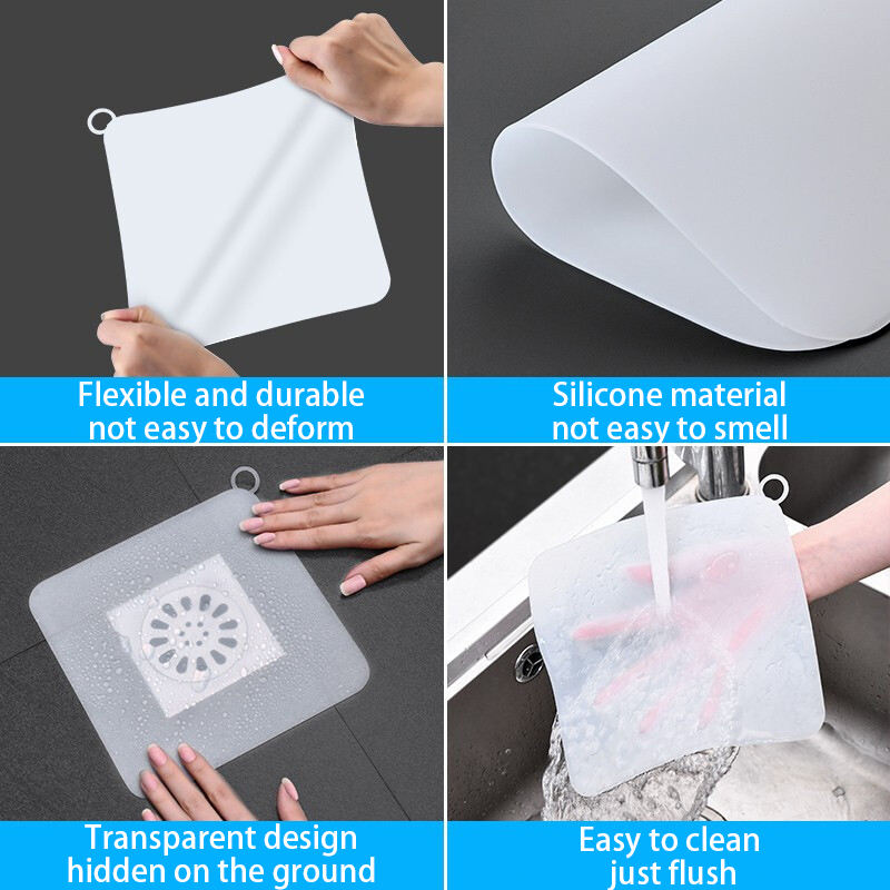 Eco Anti-odor square Sewer Silicone Floor Seal Cover Drainage Mat Bathroom Floor Drain Cover