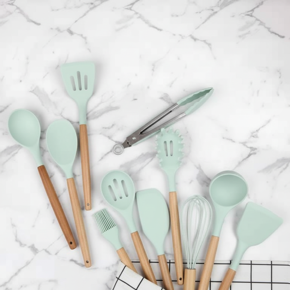 Eco-Friendly 12-Piece Kitchen Utensil Set with Wooden Handles Silicone Dishwasher Safe Tableware Cooking Peiyong China