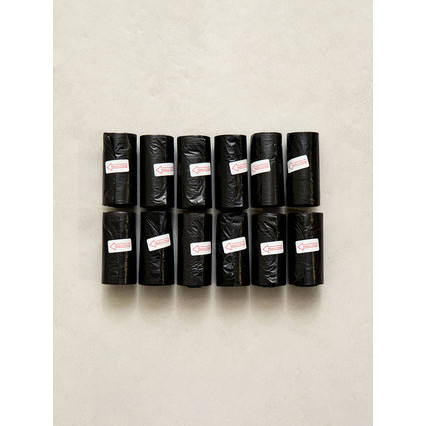 Eco-Friendly 12-Roll Black Plastic Dog Poop BagsDisposable Cat Waste Dispenser with Drawstring for Outdoor Use