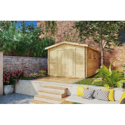 Eco-Friendly 12M² GARDEN SHED ATELIER EVA F 44MM Wood Frame Garden Storage Shed Easily Assembled for Patio Furniture