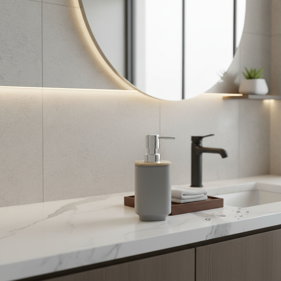 Dispenser di sapone liquido per bottiglie di disinfettante per mani grigio PP e bambù ecologico 175x65cm