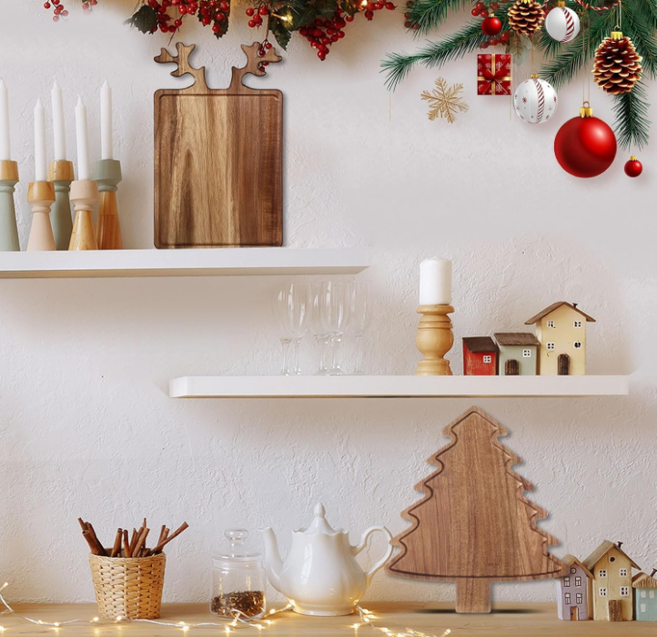 Eco-Friendly Acacia Wood Plate Dish Elk Shape Rectangular Engraving for Party Tea Dessert BOARD