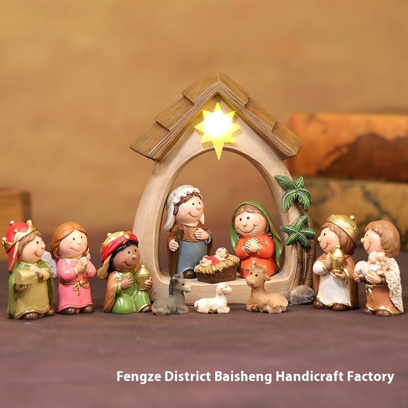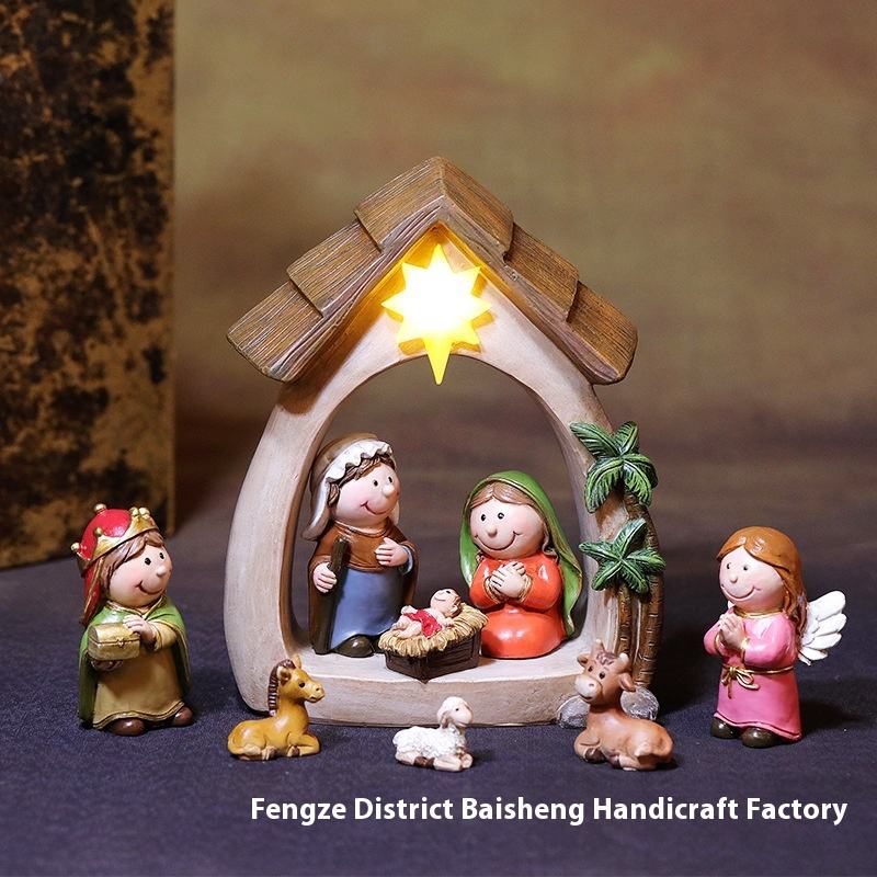 Luci LED Natalizie Ecologiche, Ornamenti in Resina della Natività di Gesù, Nuove Decorazioni e Regali per le Festività