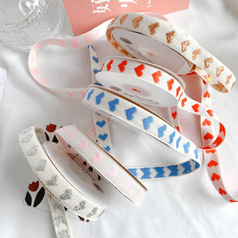 Nastro di cotone ecologico personalizzato cuore e amore in cotone jacquard nastro rosso cuore