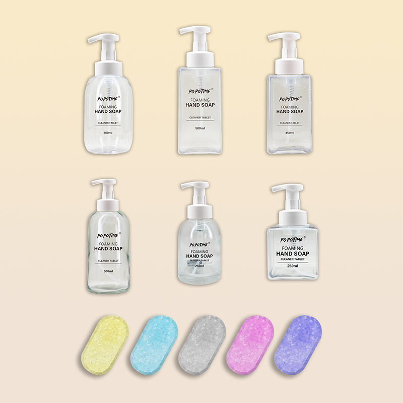 Confezionamento personalizzato eco-friendly schiuma sapone per le mani ricarica compresse con riutilizzabili in plastica PP o bottiglie di vetro