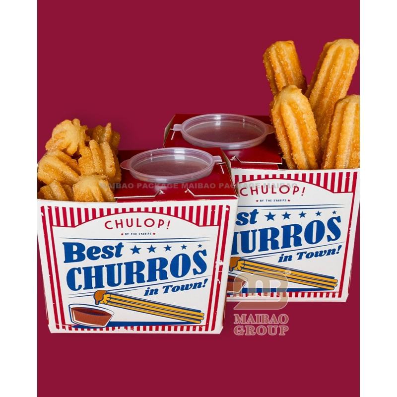 Eco Friendly manico personalizzato Churros frittelle salsa vassoio scatola torta ciambelle biscotti Sushi Brownie carta porta via scatola di imballaggio