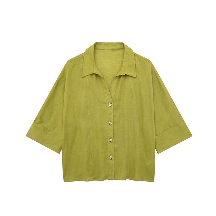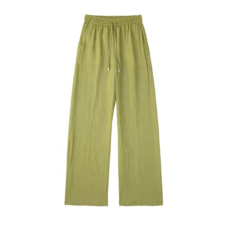 Eco Friendly misto lino 2 pezzi primavera estate camicia a maniche lunghe pantaloni larghi dritti da donna abiti Casual pigiami da salotto