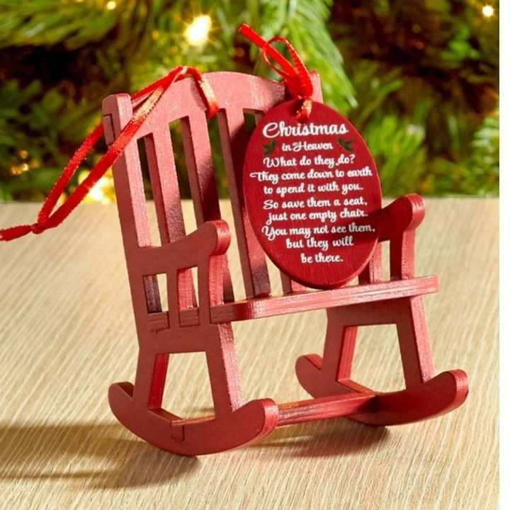 Set Decorativo Natalizio Ecologico in MDF, Piccola Sedia a Dondolo 'Natale in Cielo', Decorazione Commemorativa con Targhetta Incisa