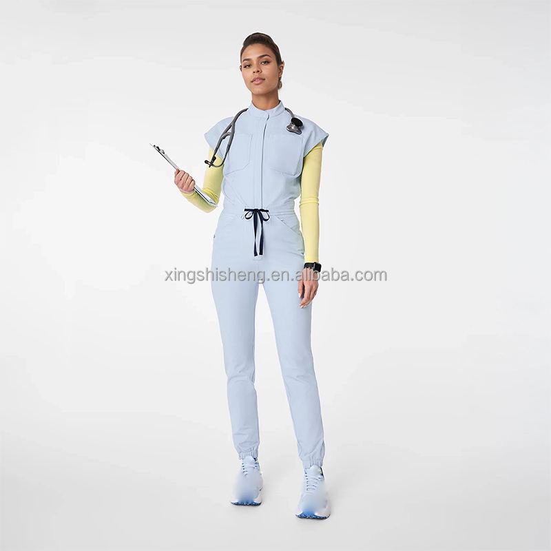 Eco-Friendly Medical Scrubs Breathable Jumpsuit Custom Logo Doctor Beauty One Piece Nursing Uniform for Women Hospital Jogger