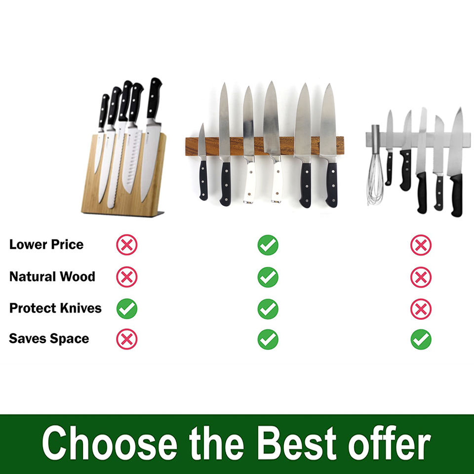 Portacoltelli Magnetico Ecologico in Bambù, Supporto Universale per Coltelli da Cucina in Legno di Noce