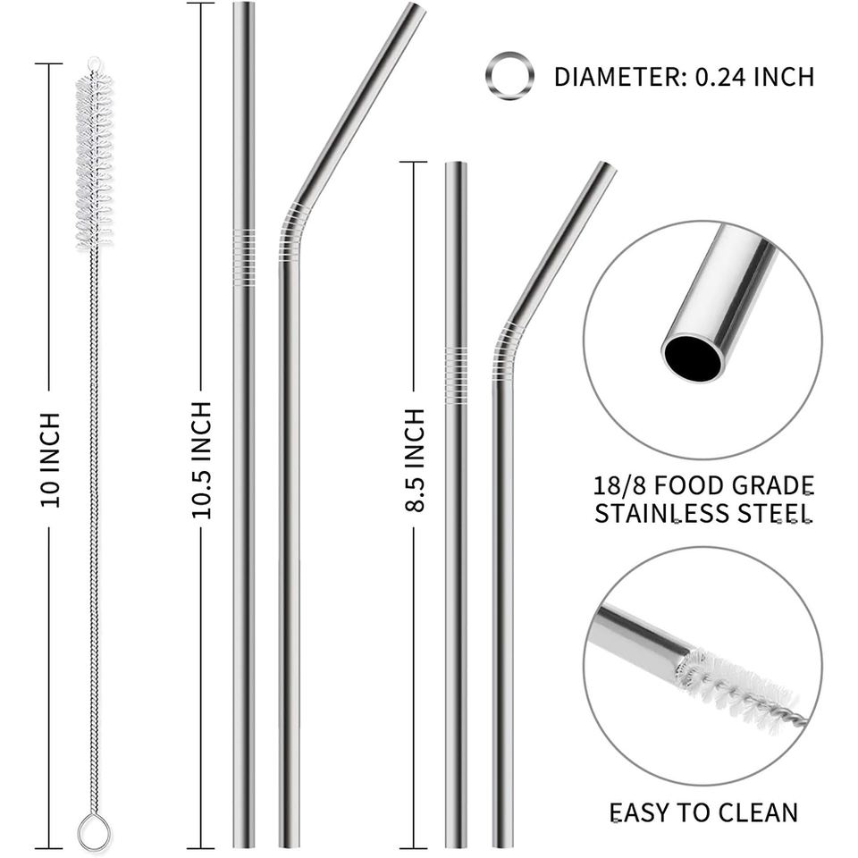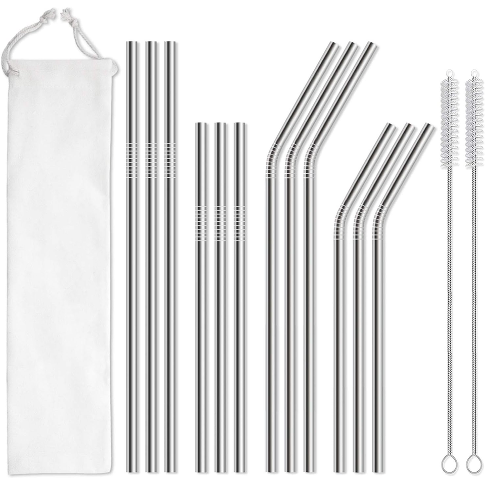 Eco Friendly Reusable 18/8 Stainless Steel Metal Straws Long Drinking Straws Tumblers Dishwasher Safe With Customized Logo