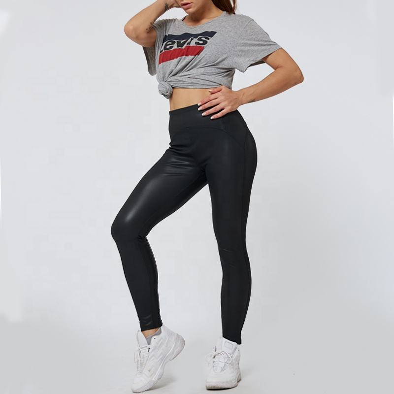 Leggings/Pantaloni da Donna Ecologici Neri Lucidi con Cuciture