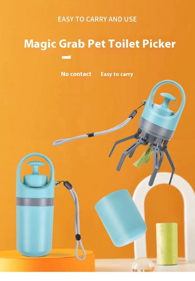 Eco-Friendly Six-Claw Dog Poop Scoop with Zero-Contact Portable Garbage Bag Dispenser Plastic Pet Waste Disposal for Outdoor Use