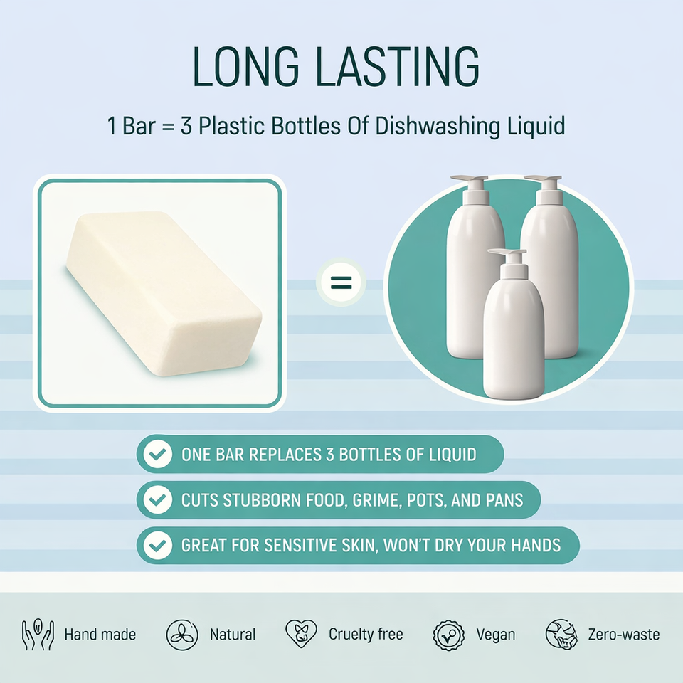 Sapone per Piatti Ecologico e Zero Rifiuti, Naturale, Non Tossico, Fatto a Mano, Senza Coloranti e Fragranze, Detersivo Solido per Piatti