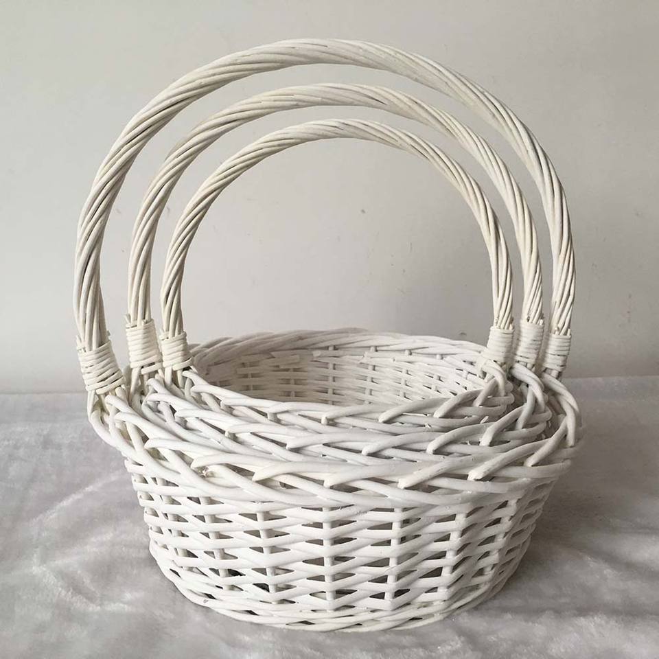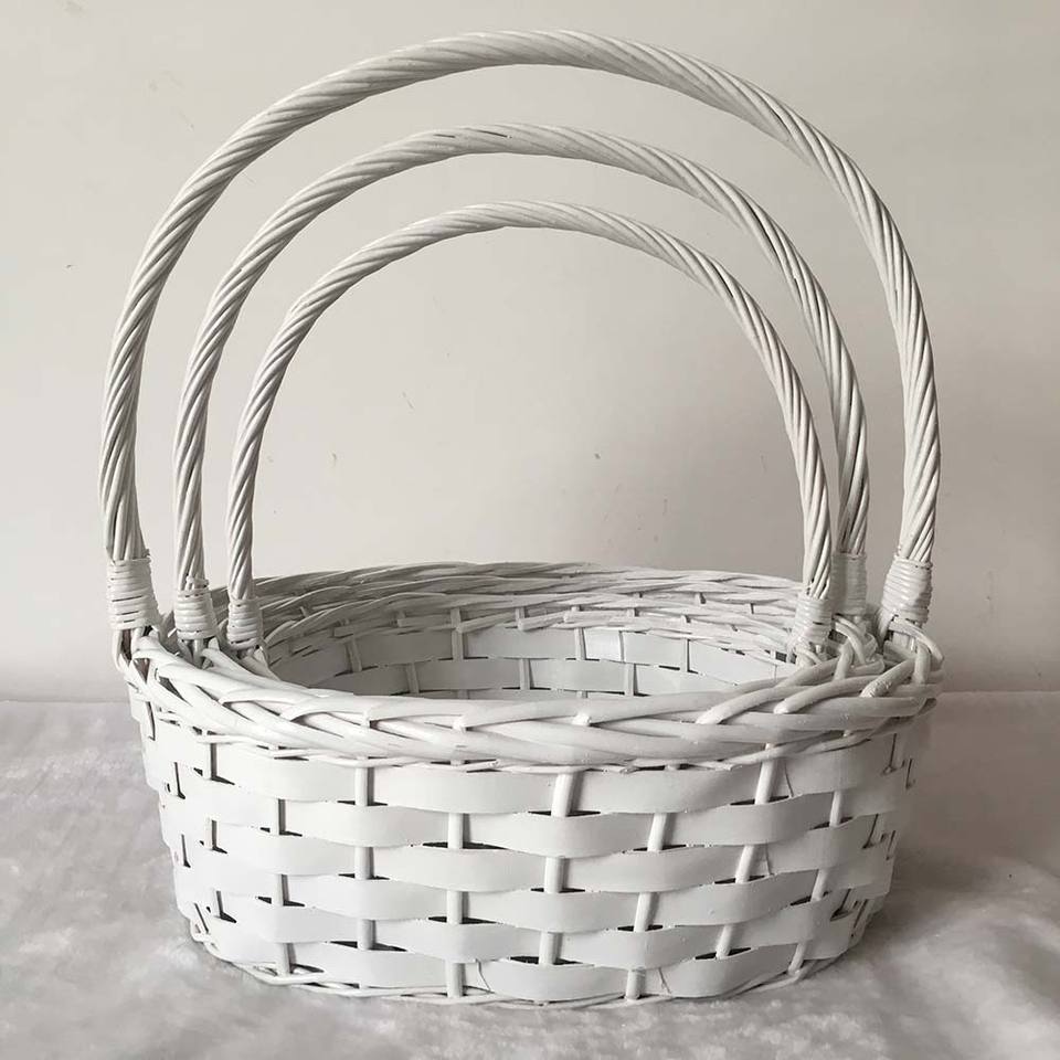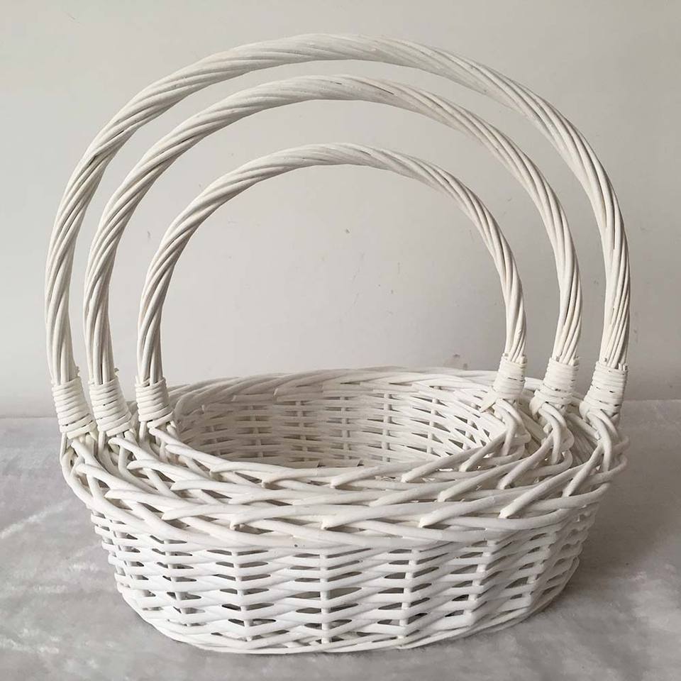Eco White Oval Wicker Flower Baskets for Gift Christmas Wicker Basket Lined Flowers With Handle Wholesale