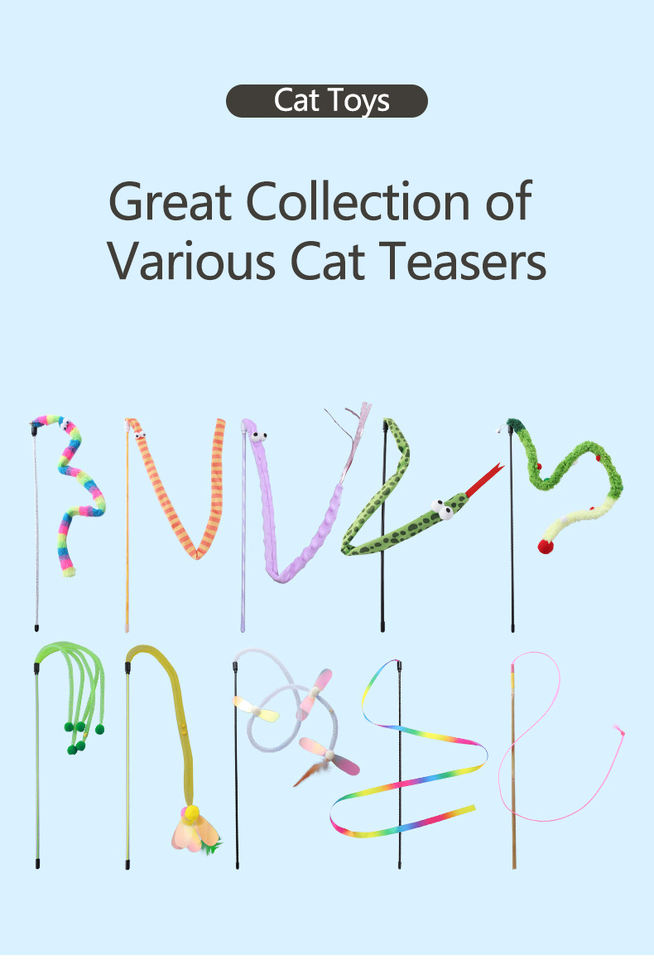 Bacchette ecologiche Teaser per gatti con piume e campane-giocattolo interattivo per gatti