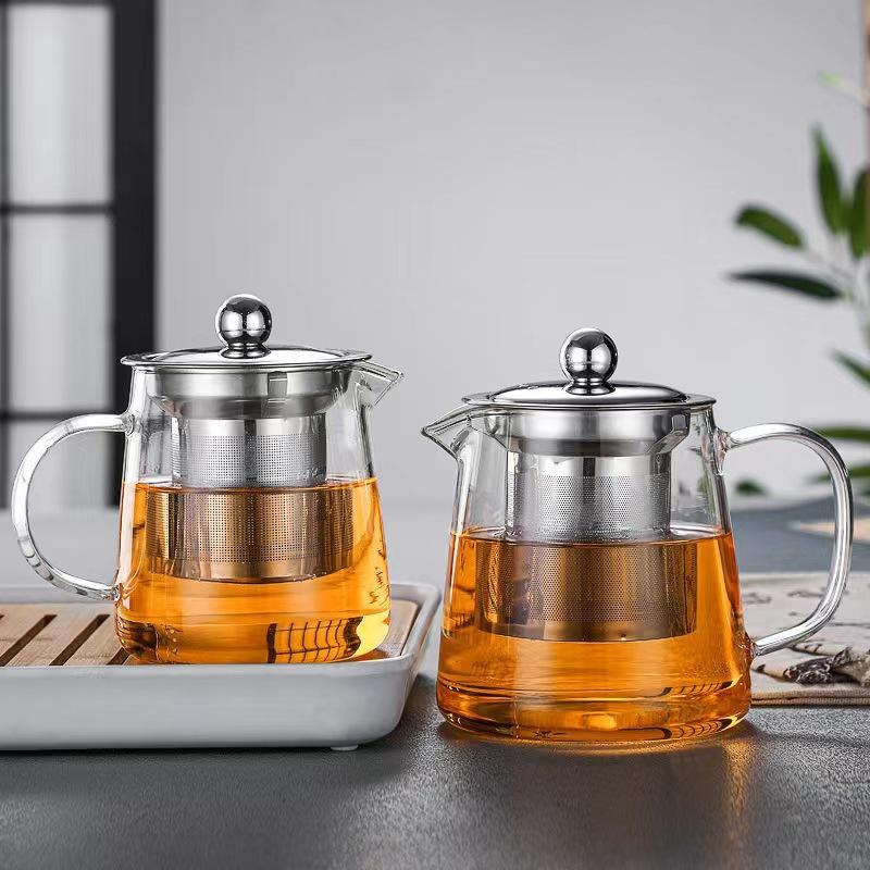 Eco-friendly Glass Teapot with Stainless Steel Filter and Lid High Borosilicate Glass Teapot Set 450ml 550ml 800ml 950ml