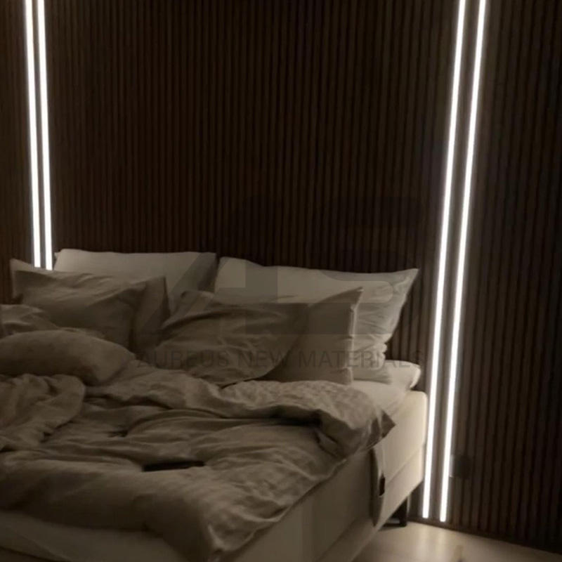 Pannelli Acustici in MDF PET Ecologici con Striscia LED, Doghe Fonoassorbenti per Pareti e Soffitti Interni