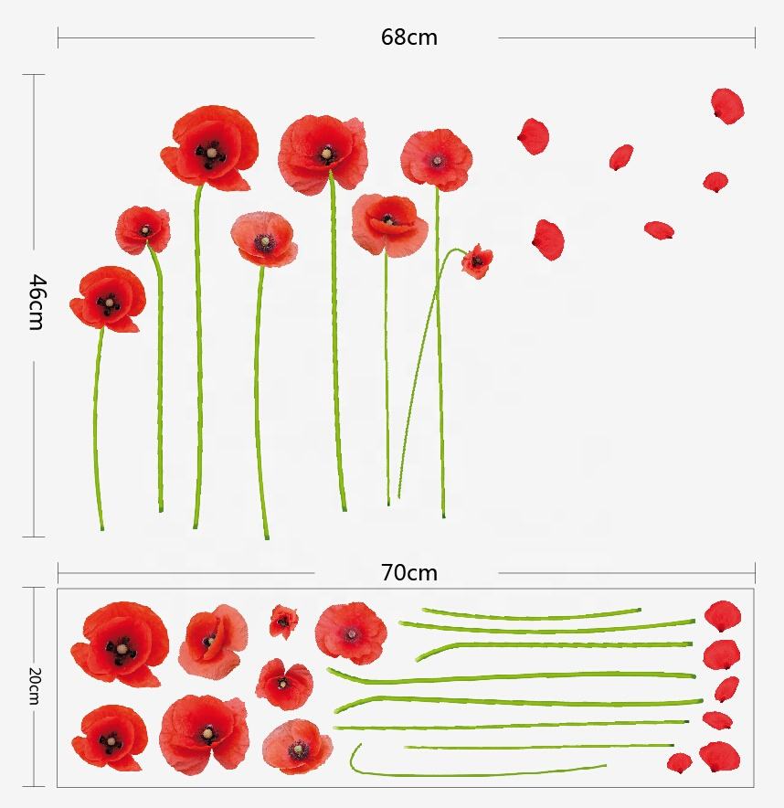 Eco-friendly Red Flower Sticker Spot Supply Home Decal Wall Decor Self-adhesive Removable Pvc Decor Stickers
