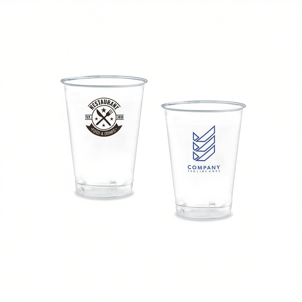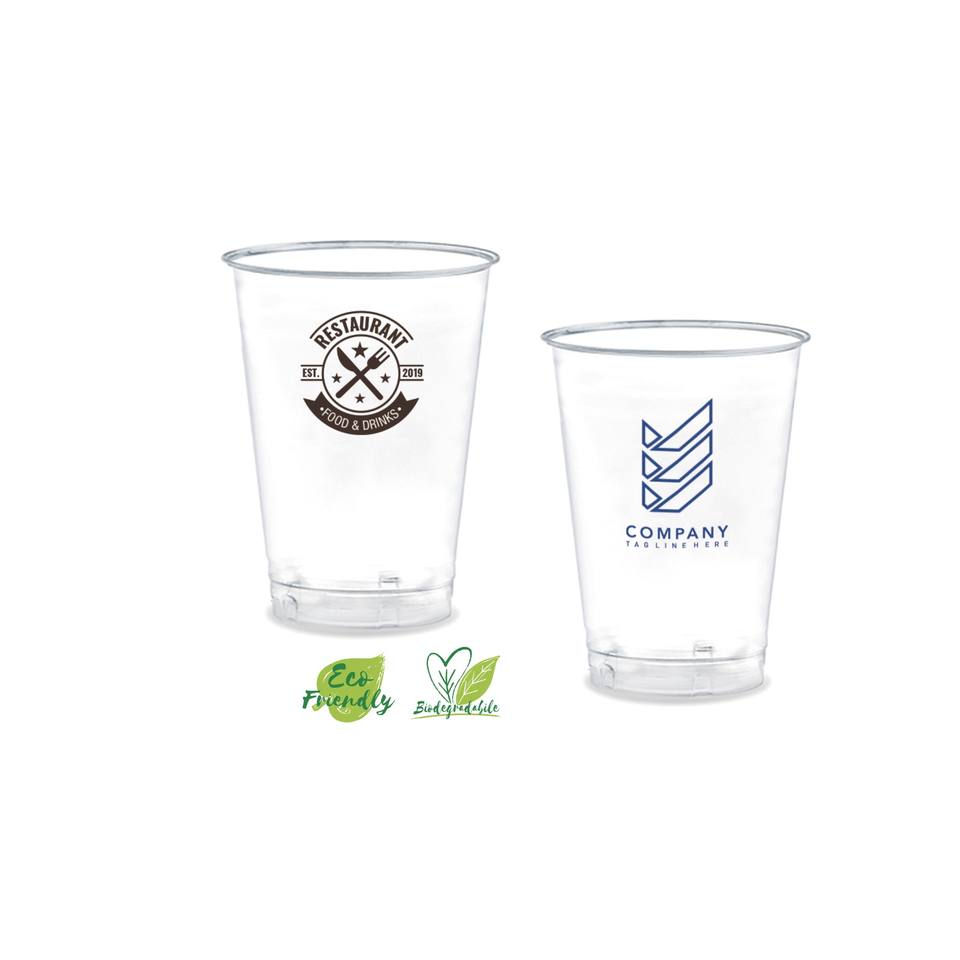 Bicchiere Ecologico Biodegradabile in PLA da 250ml, Monouso, Impilabile, Minimalista, Bianco, Etichetta Bianca, per Ristoranti e Regali Aziendali