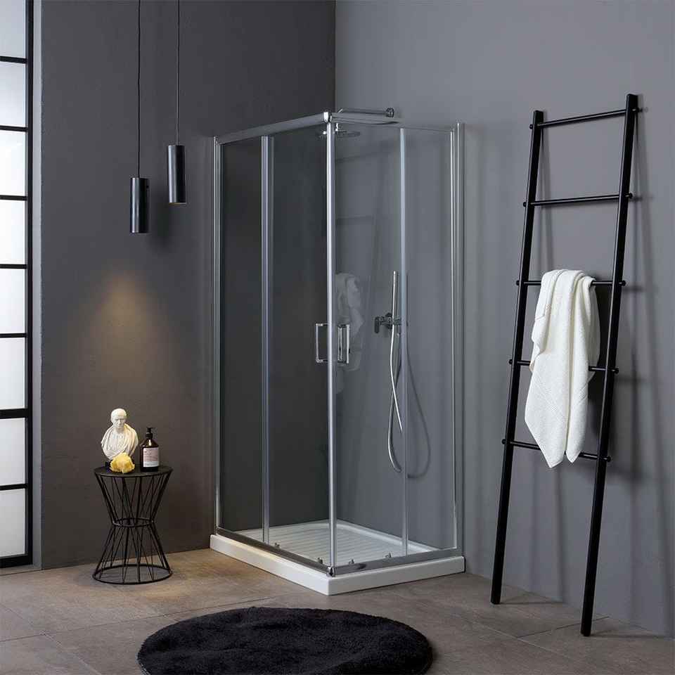 Cabina Doccia Economica 70x90 Cromata Lima con Vetro da 4mm, Telaio Cromato 90x70 Pollici, Tende Doccia di Qualità