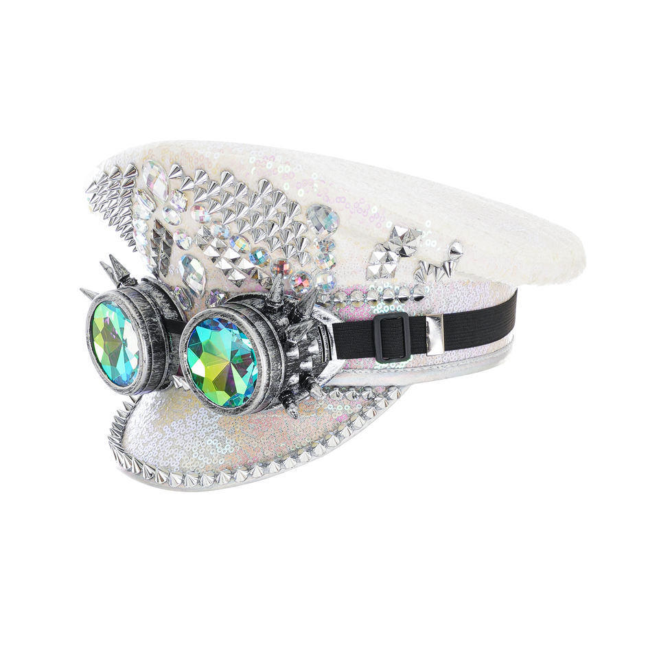 Ecoparty Women Men Steampunk Hat WithRivet Queen Sequin Burning Captain Sergeant Rave Festival Bachelorette Part Hat