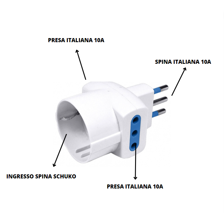 Adattatore a triplo montaggio Ecova piccolo accessorio di alimentazione Schuko 10 Ampere bianco