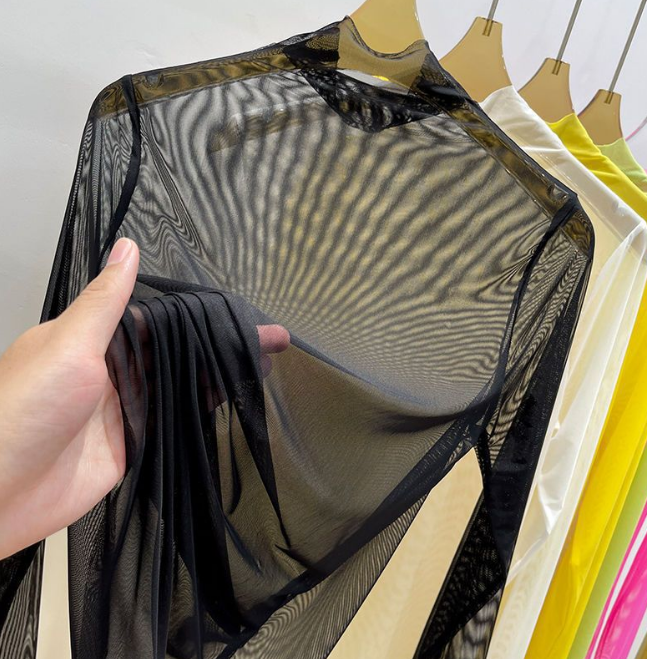 Ecowalson trasparente garza Bottoming t-Shirt abbigliamento donna estate a maniche lunghe con garza camicia mezza collo alto crema solare