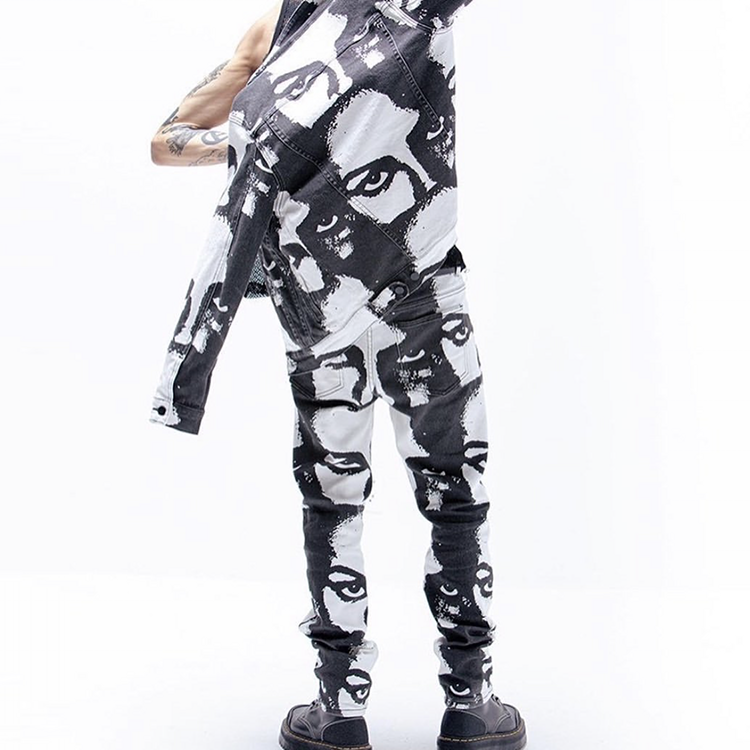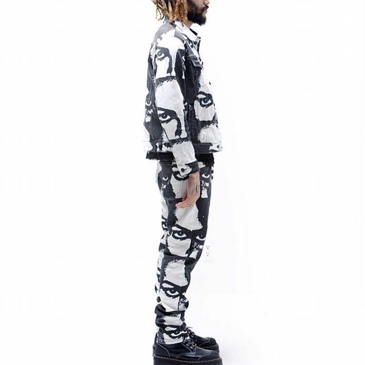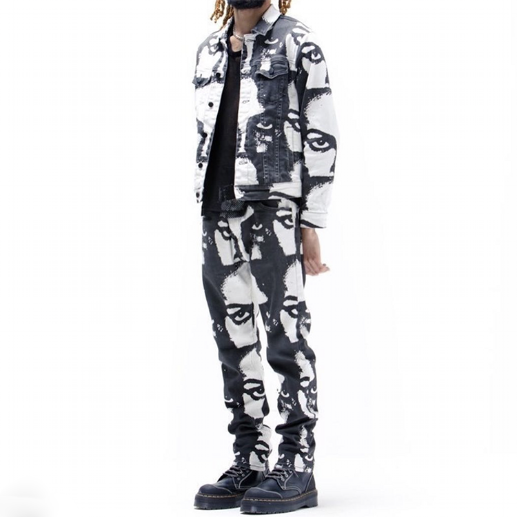 Completo da Uomo Edge Denim con Stampa Digitale a Sublimazione Personalizzata, Outfit in Jeans, Set Giacca e Pantaloni, Abito in Jeans da Uomo