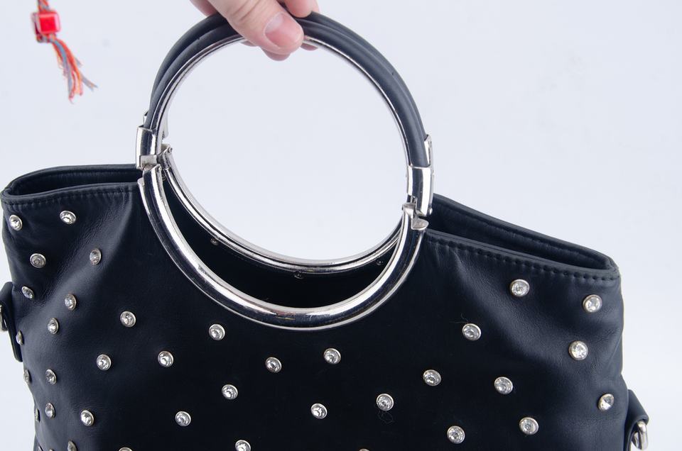 Edgy Black Studded Leather Tote Bag - Punk Style Oversized Handbag with Metal Ring Handle, Fashionable Statement Purse for Women