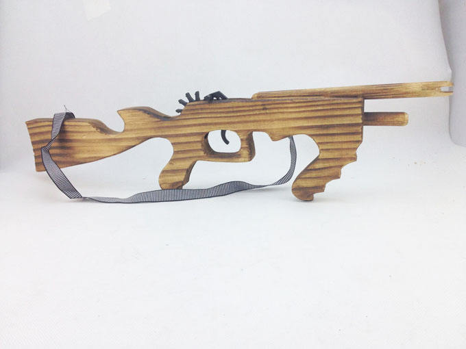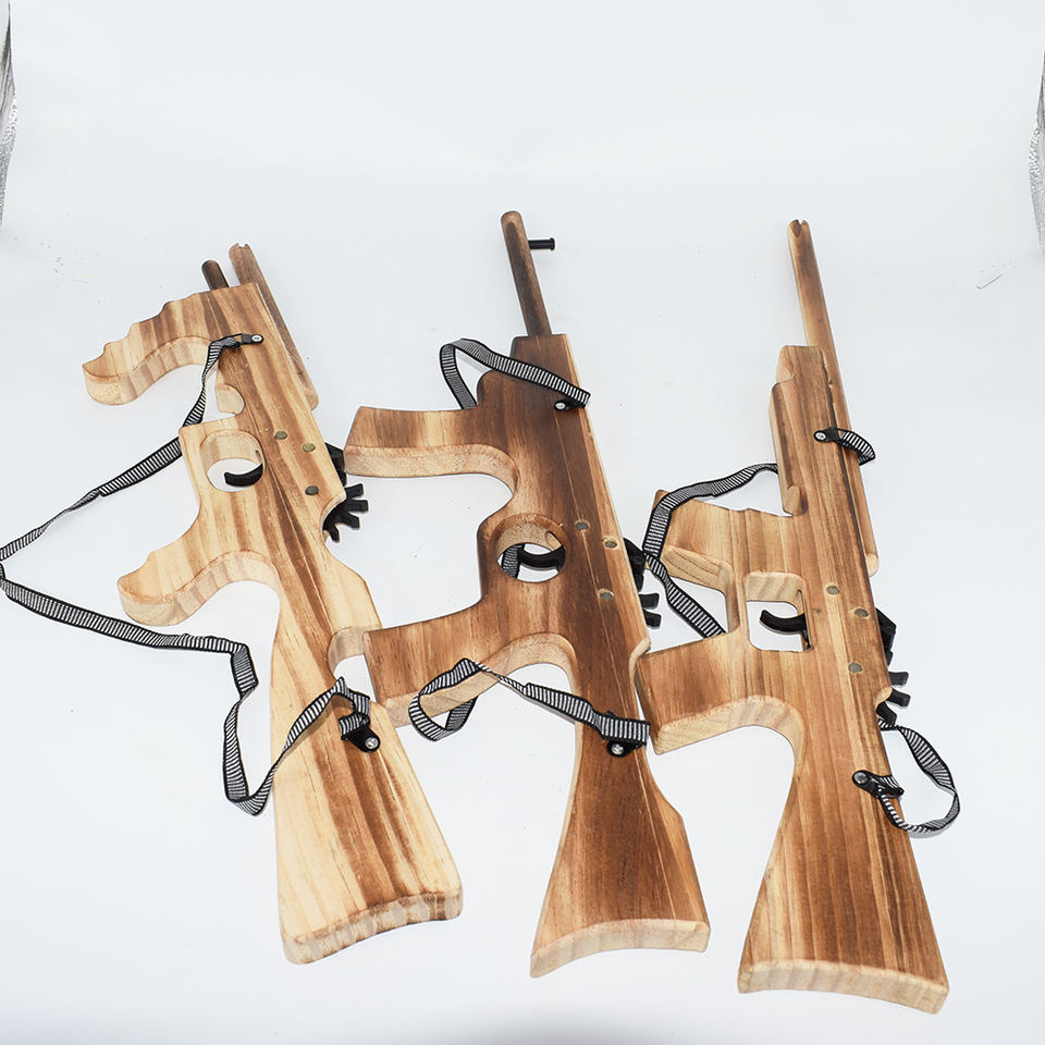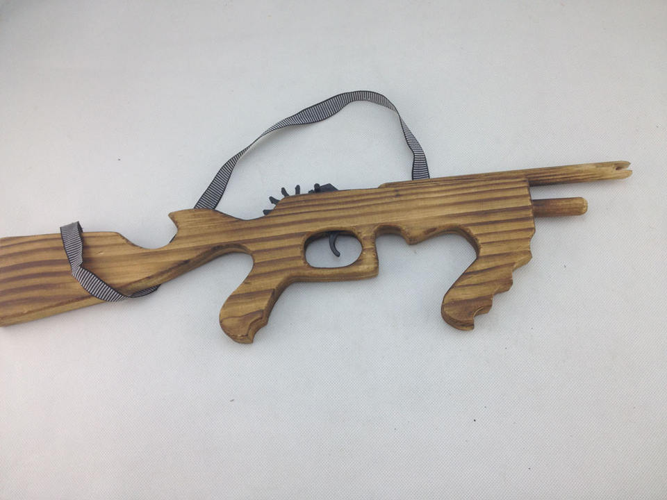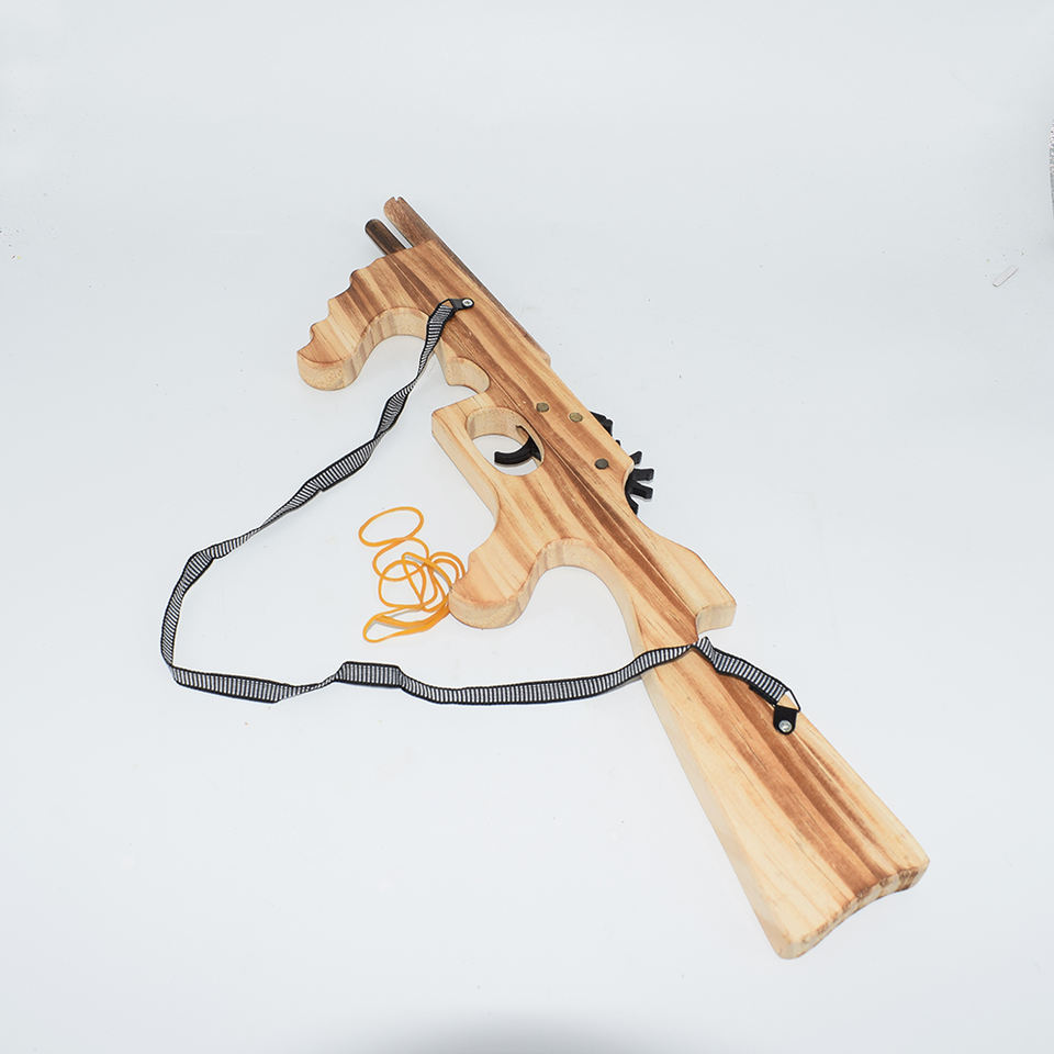 Descrizione:Pistola sparatutto a fascia elastica AK47 a forma di pistola giocattolo in legno pistola giocattolo