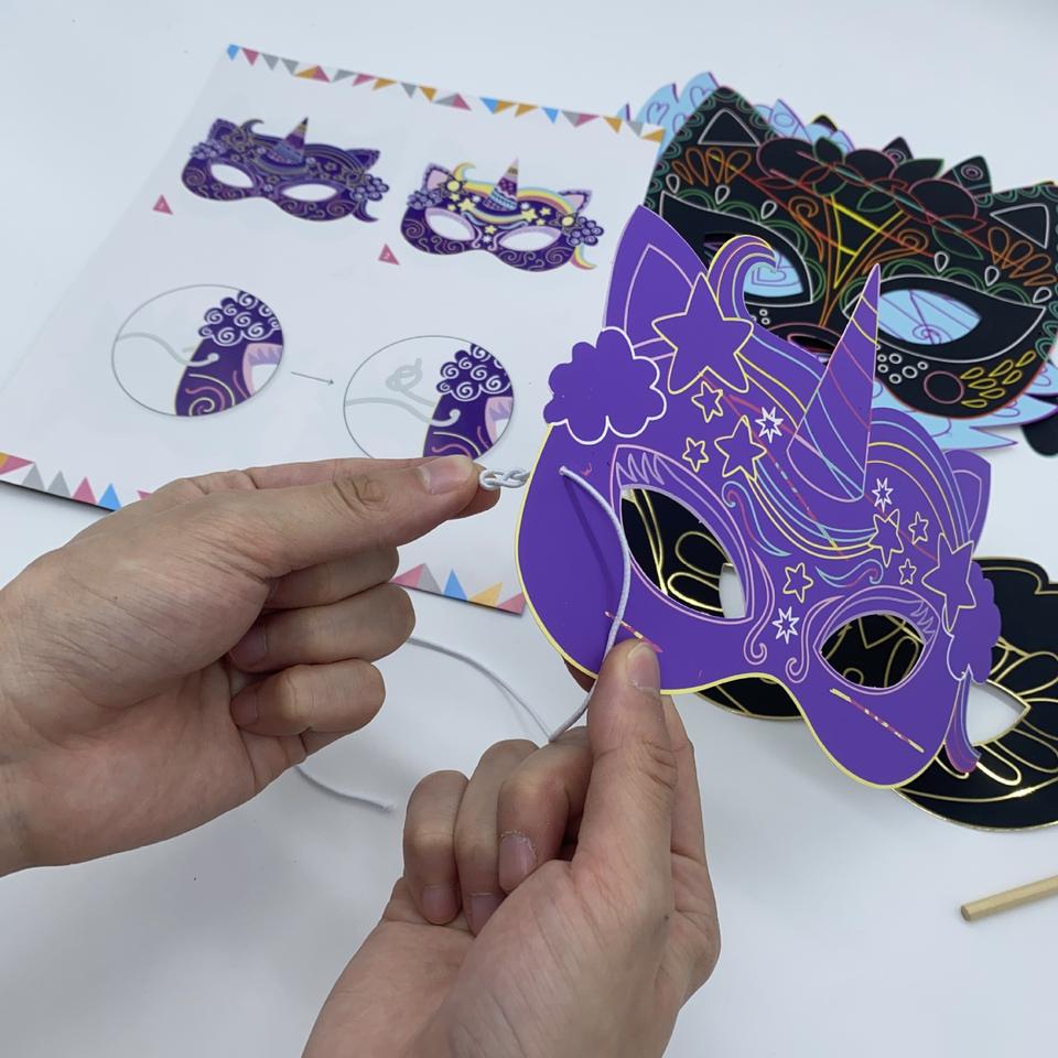 Educational ToysChildren's Unisex DIY Paper Mask Scratch Painting Puzzle Drawing Board-Colorful Graffiti Cartoon Design