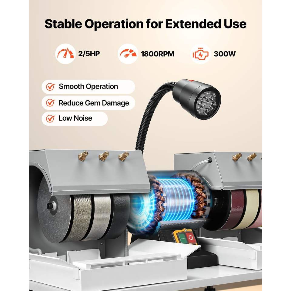 Efficiente Macchina Lucidatrice per Pietre da 6 Pollici, 2/5 HP, 1800 RPM, con Lampada LED e Sistema ad Acqua, per Lavorazione Diamanti e Resina