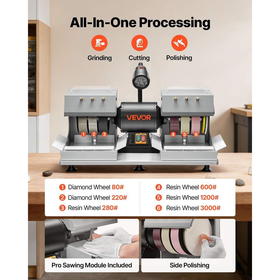 Efficiente Macchina Lucidatrice per Pietre da 6 Pollici, 2/5 HP, 1800 RPM, con Lampada LED e Sistema ad Acqua, per Lavorazione Diamanti e Resina