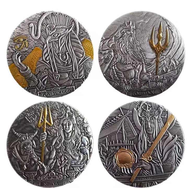 Egyptian Gods & Greek Mythology Antique Bronze Token Anubis Zeus Pharaoh Custom Print Lucky Guardian Figurine Collection