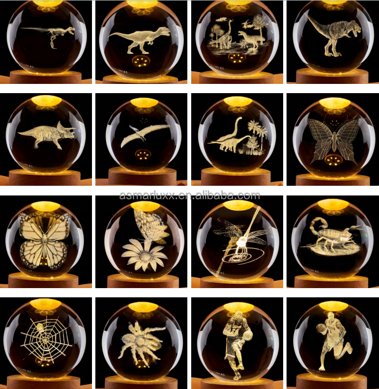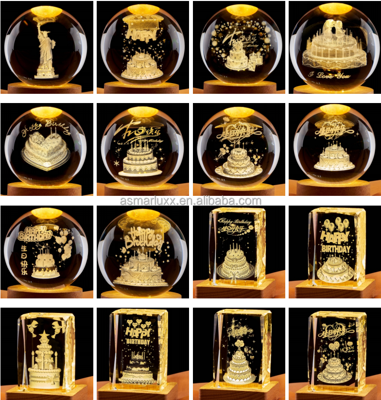 Lanterne per l'Eid Al-Fitr Edizione Limitata 6CM 8CM Sfere di Cristallo Ecologiche Incise al Laser con Stampa Cartoon