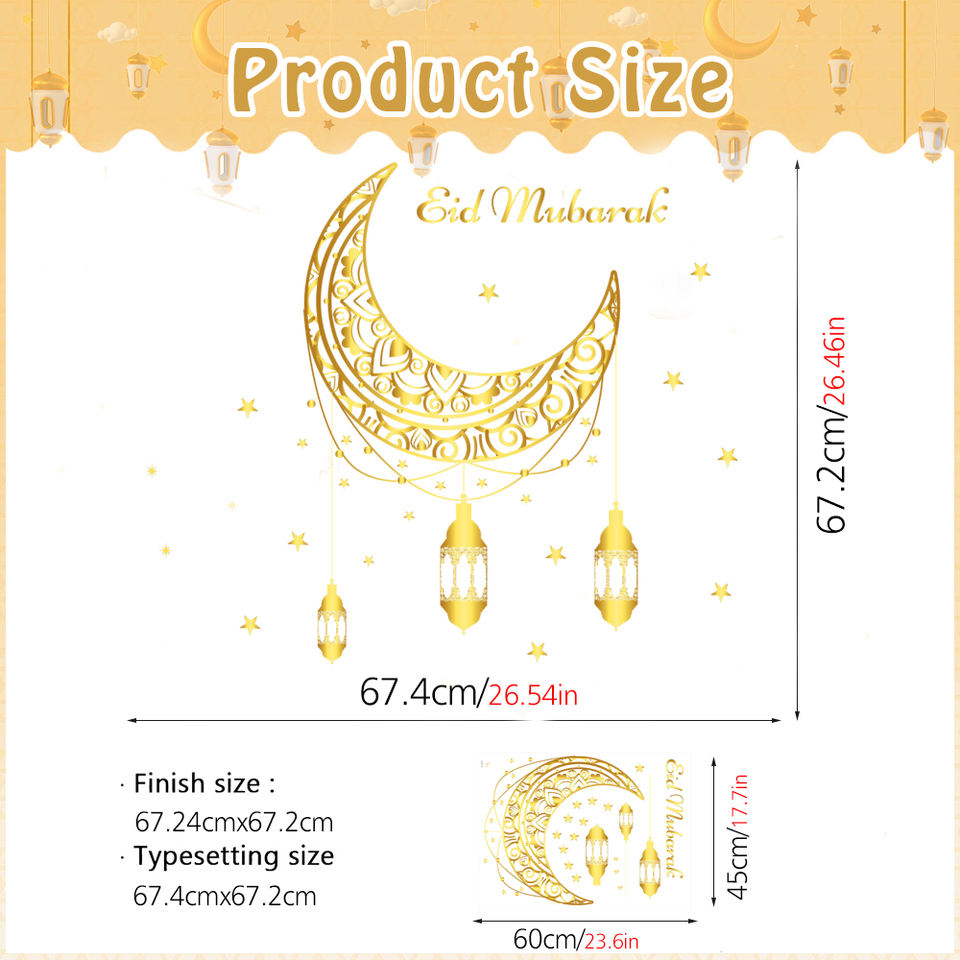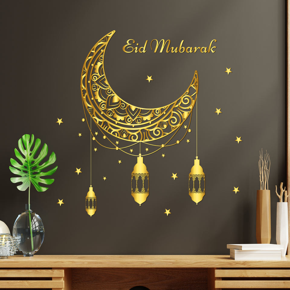 Nome del prodotto:Set di Decorazioni da Parete Dorate per Eid con Luna Crescente, Stella e Pendenti