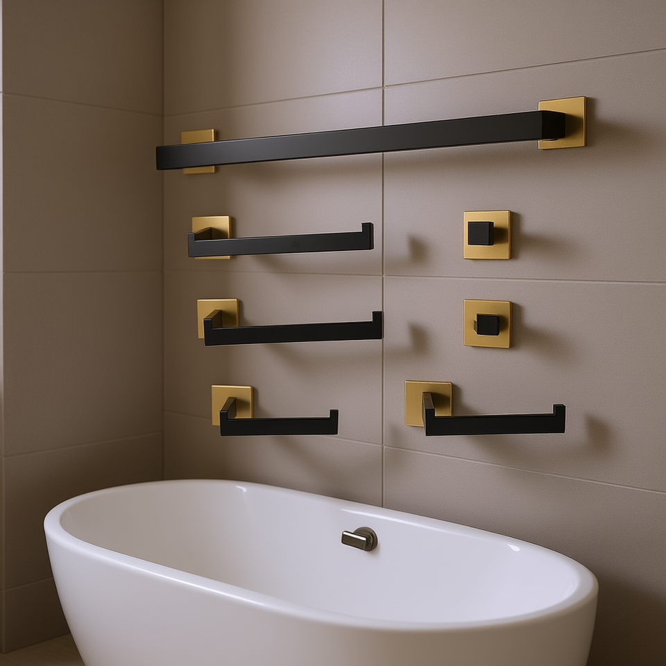 Bathroom Hardware Set Matte Black Brass Wall Mounted Minimalist Design 8 Piece Bath Accessories