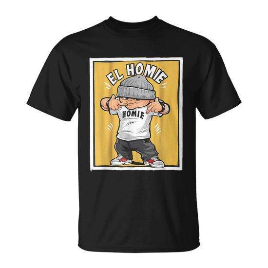 T-Shirt Promozionale El Homie Mexican El Cholo con Stampa Serigrafica, Collo Tondo, Manica Corta, Unisex per Adulti, in Cotone Nero, Abbigliamento Casual