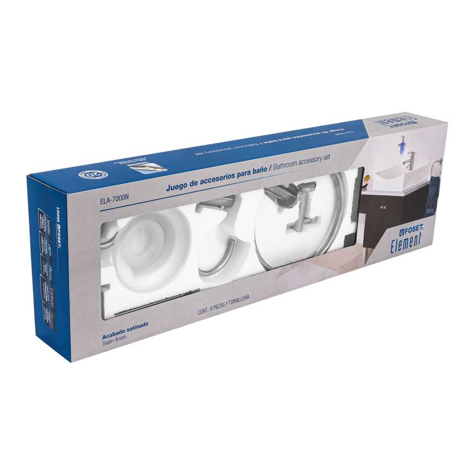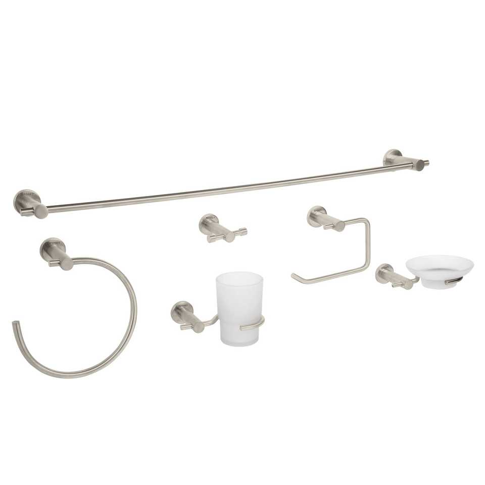 Ela-7000N Satin Bathroom Accessory Set 6-Piece Modern Steel and Chrome-Finished Bath Hardware for Home or Hotel