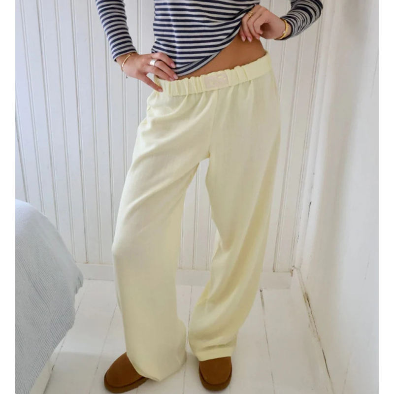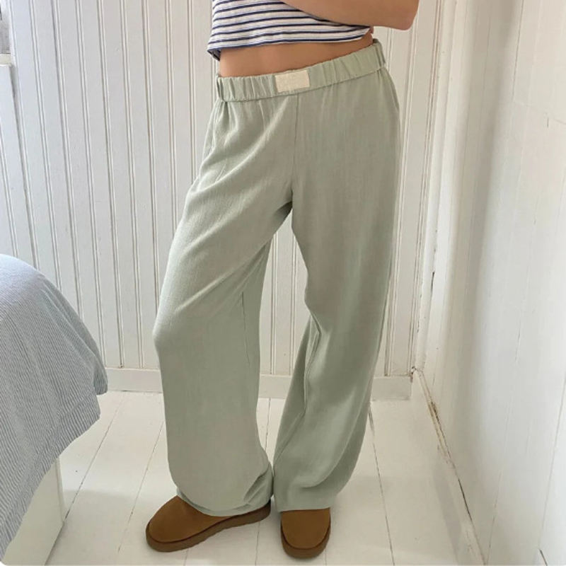Elastic Waist Wide Leg Trousers Womens Summer Linen Mid Low Rise Wide Leg Trouser Lounge Pants Wide Leg Striped Cotton Trousers