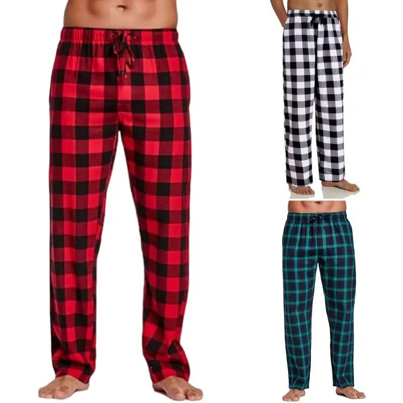 Elastic Waste Men's Straight-Fit Woven Pajama Pant Sleepwear Flannel Plaid Pajamas Knit Sleeping Walking Trouser